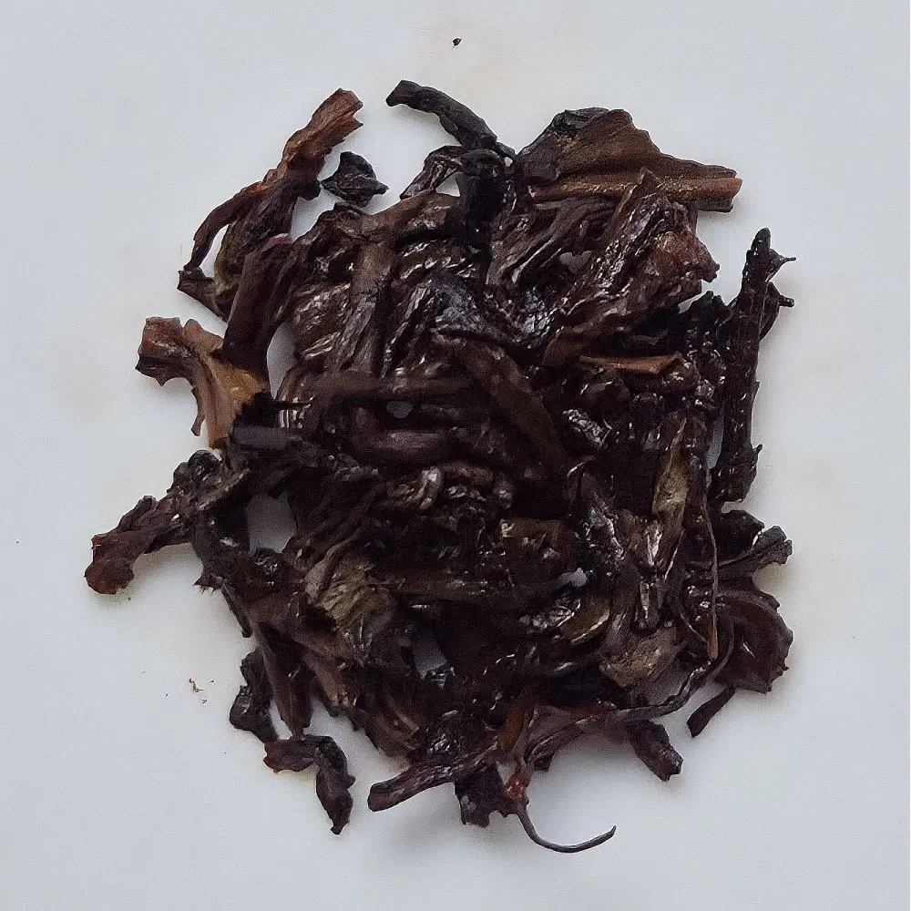 En tasse, il révèle une infusion profonde et très foncée. Sa liqueur offre une belle rondeur en bouche, où s'équilibrent parfaitement des notes chaleureuses de terre humide, de mousse et de sous-bois.